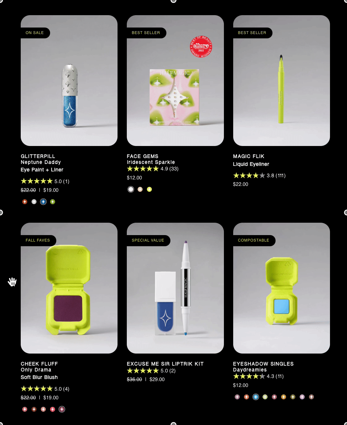 To capture Half Magic's essence digitally, we designed modules that inspire new looks, encourage interactive product discovery, and foster a unique community. The outcome is a digital playground where makeup is fun and "normal" means nothing.